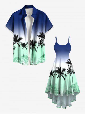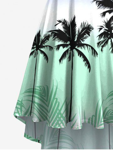 Plus Size Coconut Tree Ombre Colorblock Print High Low Hawaii Cami Dress - Blue - S