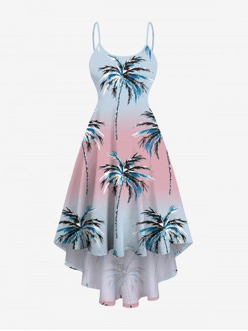 Graphic Dresses > Plus Size Coconut Tree Ombre Colorblock Print High Low Hawaii Cami Dress