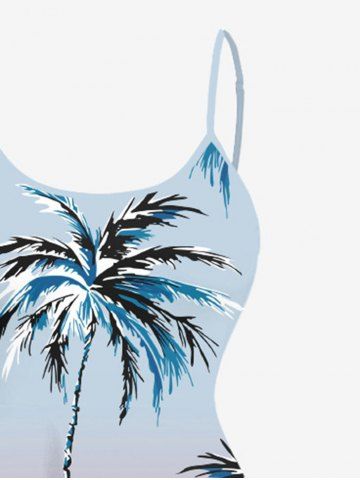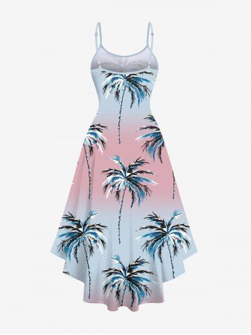 Plus Size Coconut Tree Ombre Colorblock Print High Low Hawaii Cami Dress - Light Blue - 3x