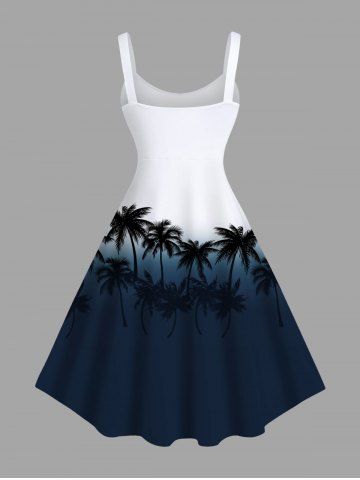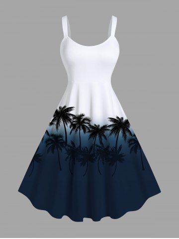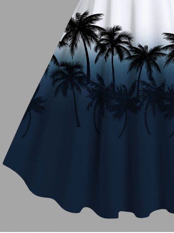 Plus Size Coconut Tree Ombre Colorblock Printe Hawaii Tank Dress - Midnight Blue - L
