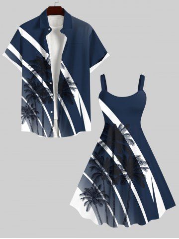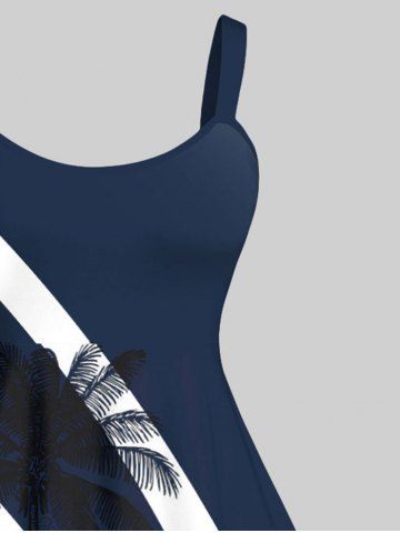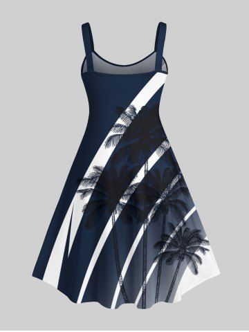 Plus Size Coconut Tree Ombre Colorblock Stripes Print Hawaii Tank Dress - Midnight Blue - 6x