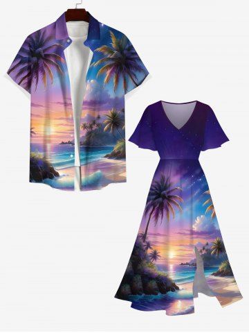 d*****i5Coconut Tree Ombre Colorful Sky Sea Print Plus Size Matching Hawaii Beach Outfit For CouplesColor: MULTI-Awonderful colorful polyester print shirt that feels cool when wearing it in the heat