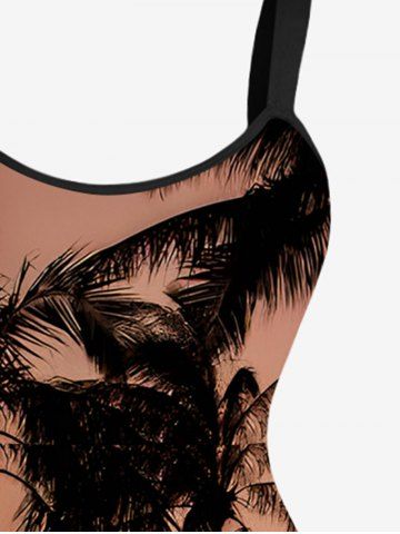 Plus Size Coconut Tree Ombre Dusk Print Hawaii A Line Tank Dress - Orange - 6x