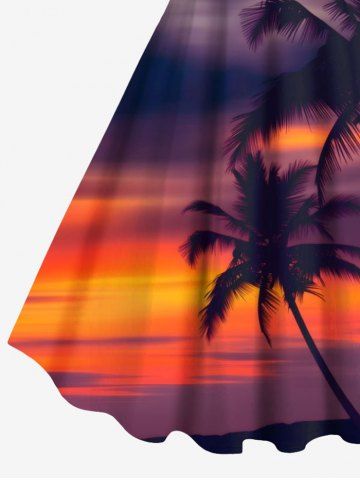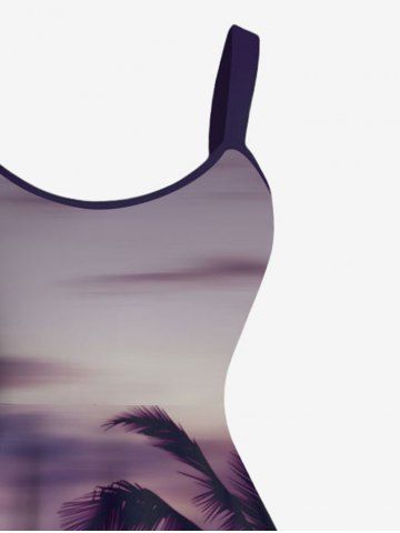 Plus Size Coconut Tree Ombre Dusk Print Hawaii A Line Tank Dress - Red - 1x