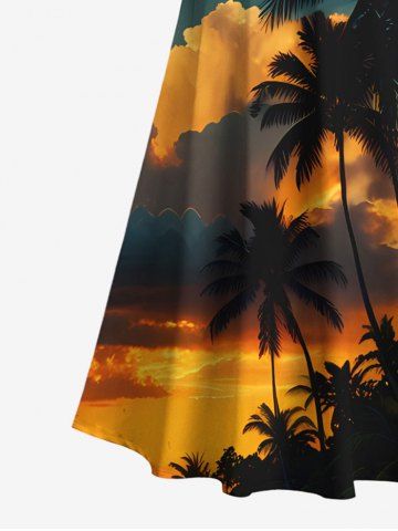 Graphic Dresses > Plus Size Coconut Tree Ombre Dusk Print Hawaii Cold Shoulder Crisscross A Line Maxi Dress
