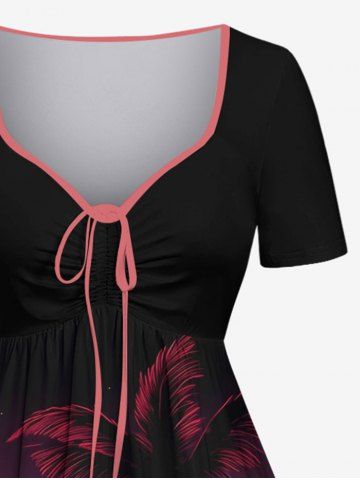 Plus Size Coconut Tree Ombre Galaxy Print Hawaii Cinched A Line Dress - Red - Xs