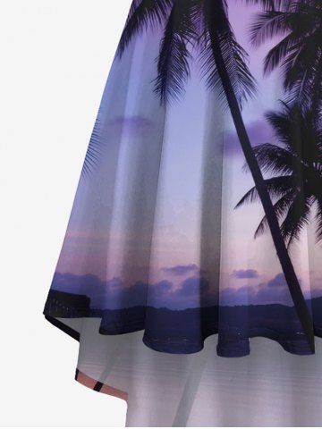 Plus Size Coconut Tree Ombre Galaxy Print Hawaii High Low Asymmetric Cami Dress - Blue - 5x