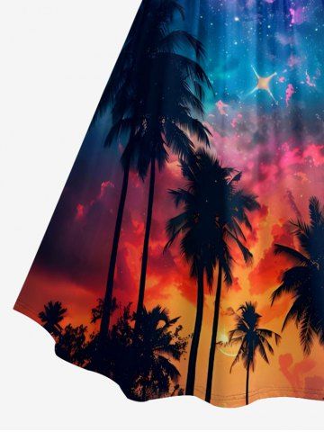 Graphic Dresses > Plus Size Coconut Tree Ombre Galaxy Print Hawaii Ruched Crisscross Strappy A Line Cami Dress