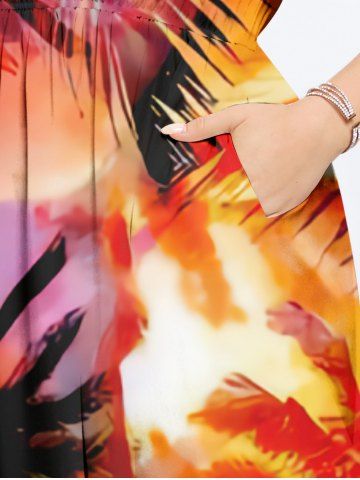 Plus Size Coconut Tree Ombre Graffiti Print Hawaii Split Pocket A Line Midi Dress - Multi-a - 3x