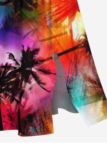 Plus Size Coconut Tree Ombre Graffiti Print Hawaii Split Pocket A Line Midi Dress - Multi-a - 4x