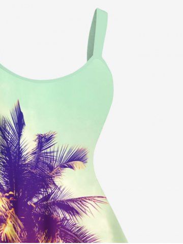 Plus Size Coconut Tree Ombre Light Spot Print Hawaii Tank Dress - Green - 4x