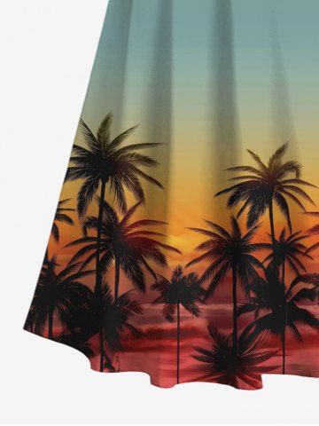 Graphic Dresses > Plus Size Coconut Tree Ombre Print Cold Shoulder Crisscross Hawaii Maxi Dress