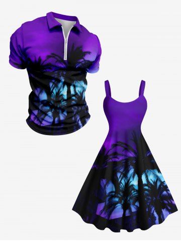 Plus Size Coconut Tree Ombre Print Hawaii A Line Tank Dress - Purple - Xxs