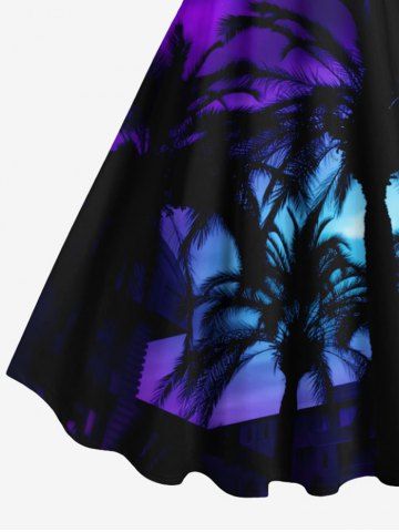 Plus Size Coconut Tree Ombre Print Hawaii A Line Tank Dress - Purple - Xs
