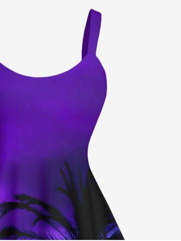 Plus Size Coconut Tree Ombre Print Hawaii A Line Tank Dress - Purple - 1x