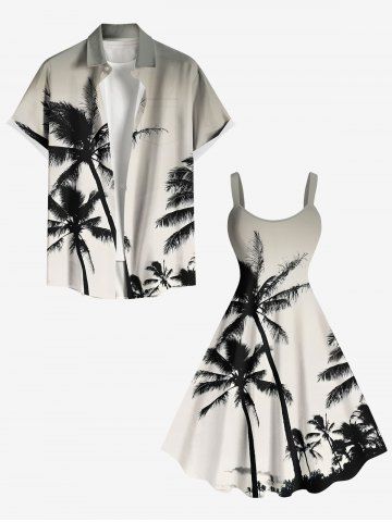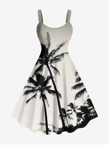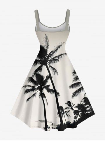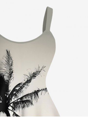 Plus Size Coconut Tree Ombre Print Hawaii A Line Tank Dress - Black - M