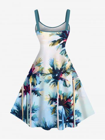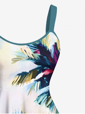 Plus Size Coconut Tree Ombre Print Hawaii A Line Tank Dress - Light Blue - M