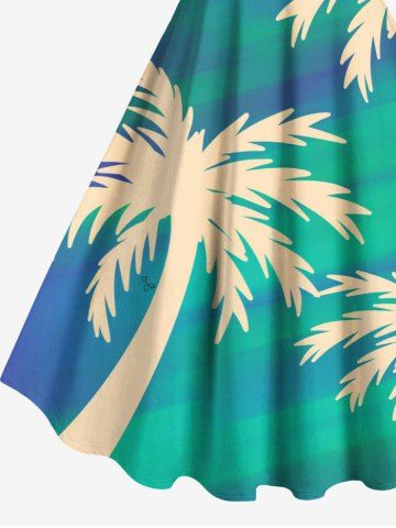 Plus Size Coconut Tree Ombre Print Hawaii A Line Tank Dress - Green - M