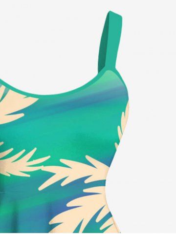 Plus Size Coconut Tree Ombre Print Hawaii A Line Tank Dress - Green - 5x