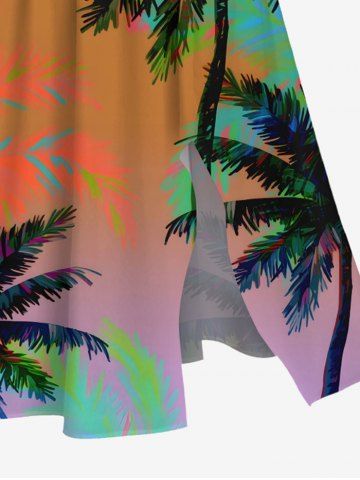 Plus Size Coconut Tree Ombre Print Hawaii Split Pocket A Line Midi Dress - Orange - 3x
