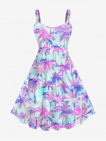 Plus Size Coconut Tree Ombre Print Hawaii Tank Dress - Multi-a - 5x