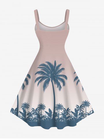 Plus Size Coconut Tree Ombre Print Hawaii Tank Dress - Light Pink - M