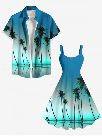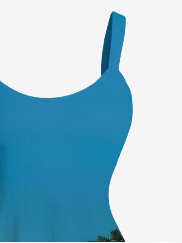 Graphic Dresses > Plus Size Coconut Tree Ombre Print Hawaii Tank Dress