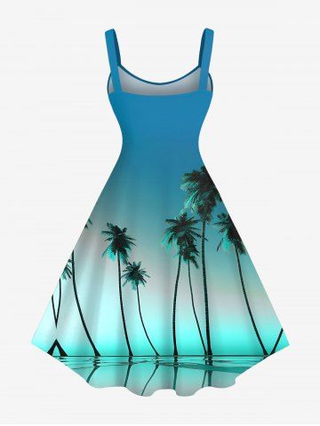 Plus Size Coconut Tree Ombre Print Hawaii Tank Dress - Green - 6x