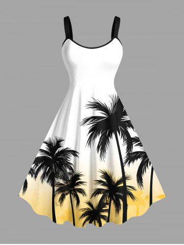 Plus Size Coconut Tree Ombre Print Hawaii Tank Dress - White - 2x
