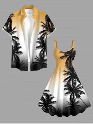 Plus Size Coconut Tree Ombre Print Hawaii Tank Dress - Light Coffee - 5x