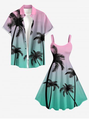 Plus Size Coconut Tree Ombre Print Hawaii Tank Dress - Pink - 3x