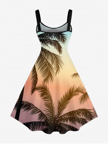 Graphic Dresses > Plus Size Coconut Tree Ombre Print Hawaii Tank Dress