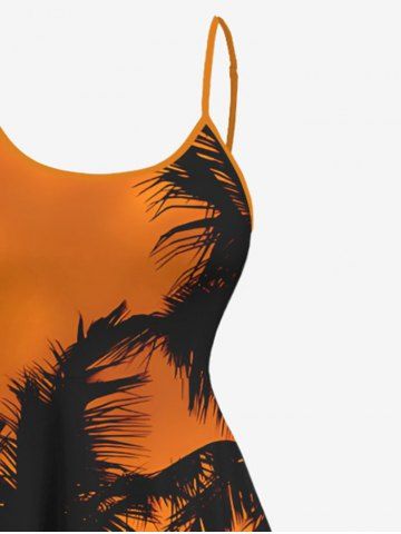 Plus Size Coconut Tree Ombre Print High Low Hawaii Cami Dress - Dark Orange - S