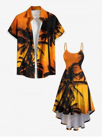 Plus Size Coconut Tree Ombre Print High Low Hawaii Cami Dress - Dark Orange - L