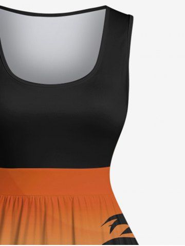 Plus Size Coconut Tree Ombre Sea Print 1950s Vintage Hawaii Dress - Black - Xs