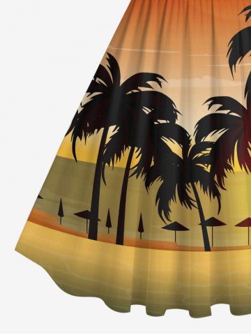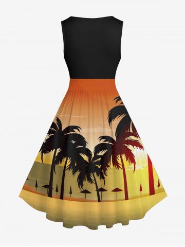 Plus Size Coconut Tree Ombre Sea Print 1950s Vintage Hawaii Dress - Black - L