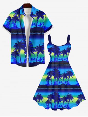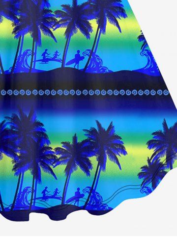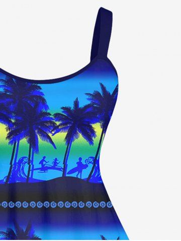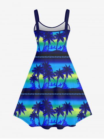 Plus Size Coconut Tree Ombre Sea Waves Striped Print Backless Hawaii A Line Tank Dress - Blue - 6x