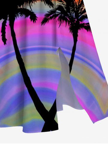 Plus Size Coconut Tree Ombre Sky Colorblock Rainbow Print Hawaii Split Pocket A Line Dress - Multi-a - M
