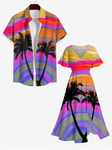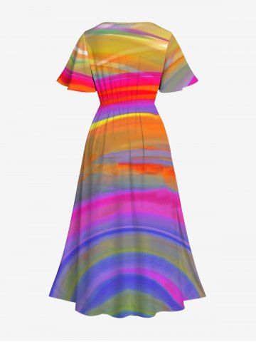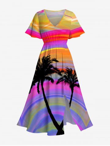 Plus Size Coconut Tree Ombre Sky Colorblock Rainbow Print Hawaii Split Pocket A Line Dress - Multi-a - 6x