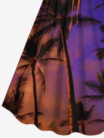 Plus Size Coconut Tree Ombre Sky Print Hawaii Cinched A Line Dress - Black - S