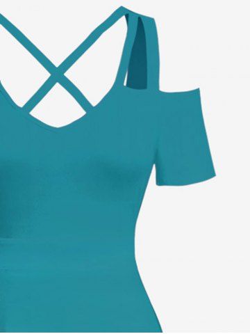 Plus Size Coconut Tree Ombre Sky Print Hawaii Cold Shoulder Crisscross A Line Maxi Dress - Green - Xs