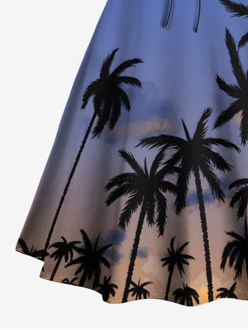 Plus Size Coconut Tree Ombre Sky Print Hawaii Lace Up A Line Tank Dress - Blue - 6x