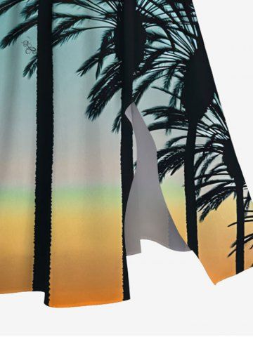 Graphic Dresses > Plus Size Coconut Tree Ombre Sky Print Hawaii Split Pocket A Line Midi Dress