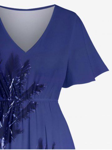 Plus Size Coconut Tree Ombre Sky Print Hawaii Split Pocket A Line Midi Dress - Blue - M