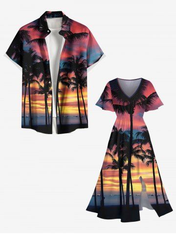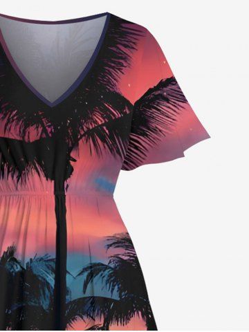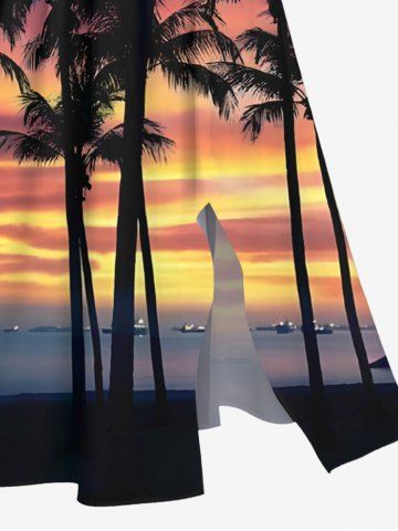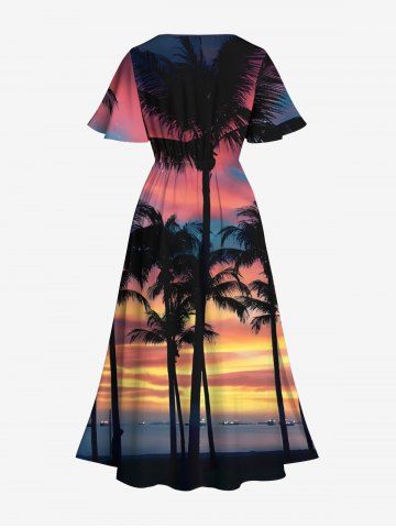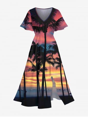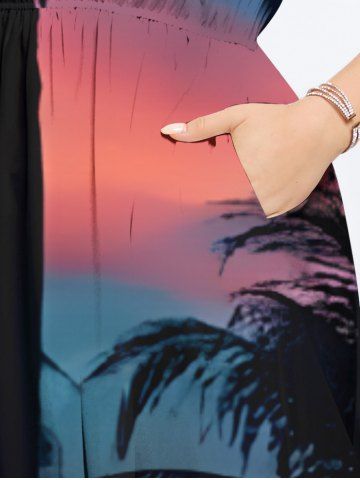 Plus Size Coconut Tree Ombre Sky Seascape Print Split Hawaii Midi Dress - Multi-a - 1x