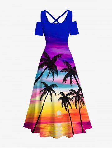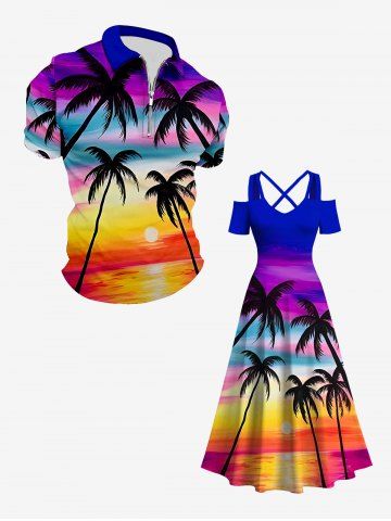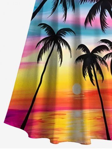L*****n5Coconut Tree Ombre Sky Sun Print Plus Size Matching Hawaii Beach Outfit For CouplesColor: MULTI-APerfect! It stretches so you can size down. It’s fitted and the colors are vibrant. The men’s shirt is perfect match. Definitely get this one and all the styles with this type of dress.