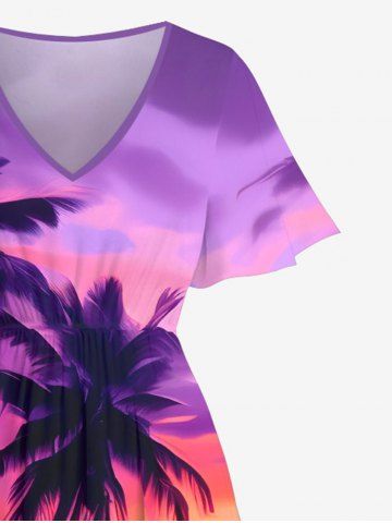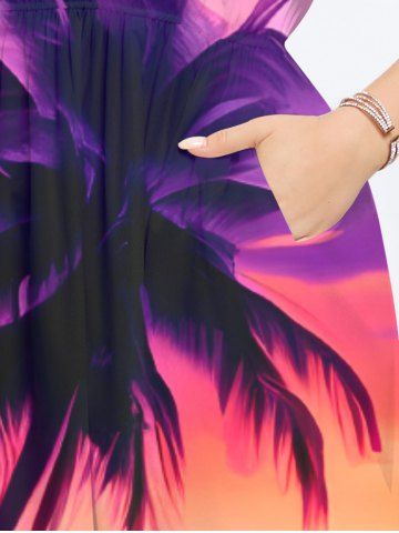 Plus Size Coconut Tree Ombre Sky Sunset Print Split Hawaii Midi Dress - Purple - M