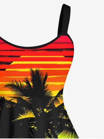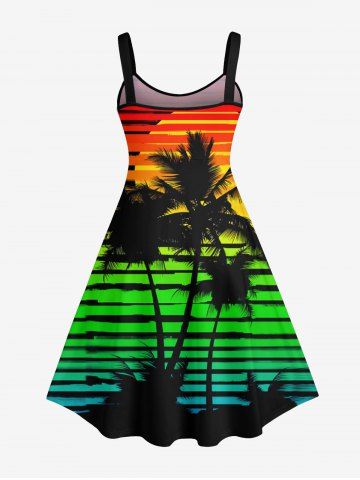Plus Size Coconut Tree Ombre Striped Sun Printed Hawaii Backless A Line Tank Dress - Multi-a - M