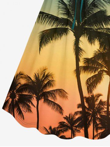 Plus Size Coconut Tree Ombre Sunset Sky Print Hawaii Cinched A Line Dress - Dark Turquoise - 5x