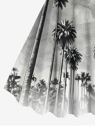 Plus Size Coconut Tree Ombre Textured Print Hawaii A Line Tank Dress - Gray - 2x